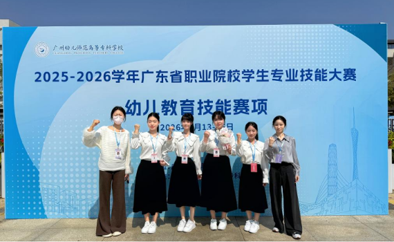 2025-2026学年广东省职业院校学生专业技能大赛幼儿教育技能赛项于3月13日-15日在广州幼儿师范高等专科学校圆满结束。学院学前教育专业李丝桦、杨慧仪、赵晓滢、周芷柔四位同学,在付玖花、陈虹诺两位