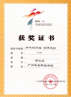 王波、宫丞飞指导:2019年11月,广东省大学生乒乓球锦标赛男单第三名,男双、女双第五名,团体总分第四名。