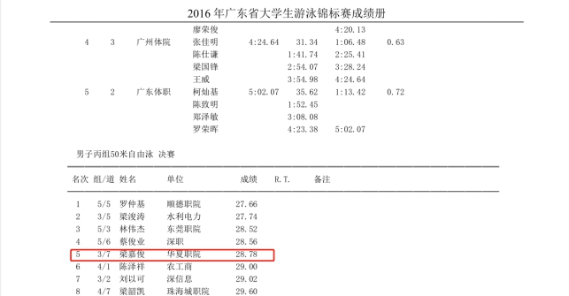 王波:2016年广东省大学生游泳锦标赛50米自由泳第五名(梁嘉俊)
