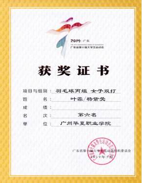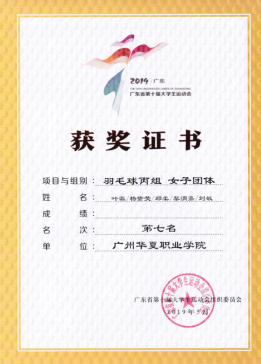 宫丞飞、蔡国强指导:2019年5月,第十届广东省大学生运动会羽毛球比赛女双第六名,女团第七名