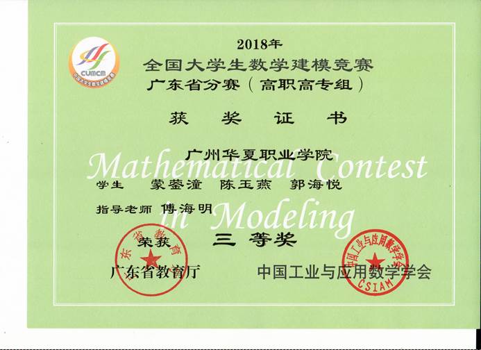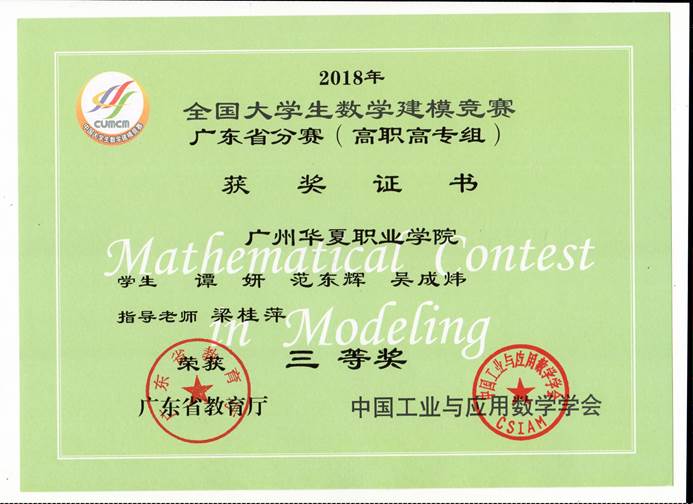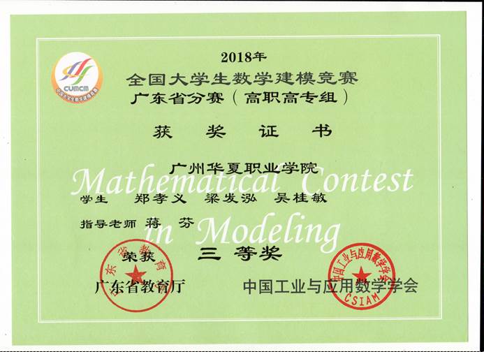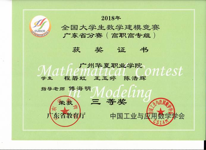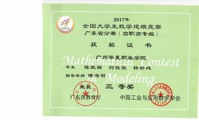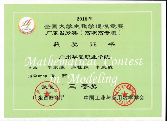 全国大学生数学建模竞赛获奖证书