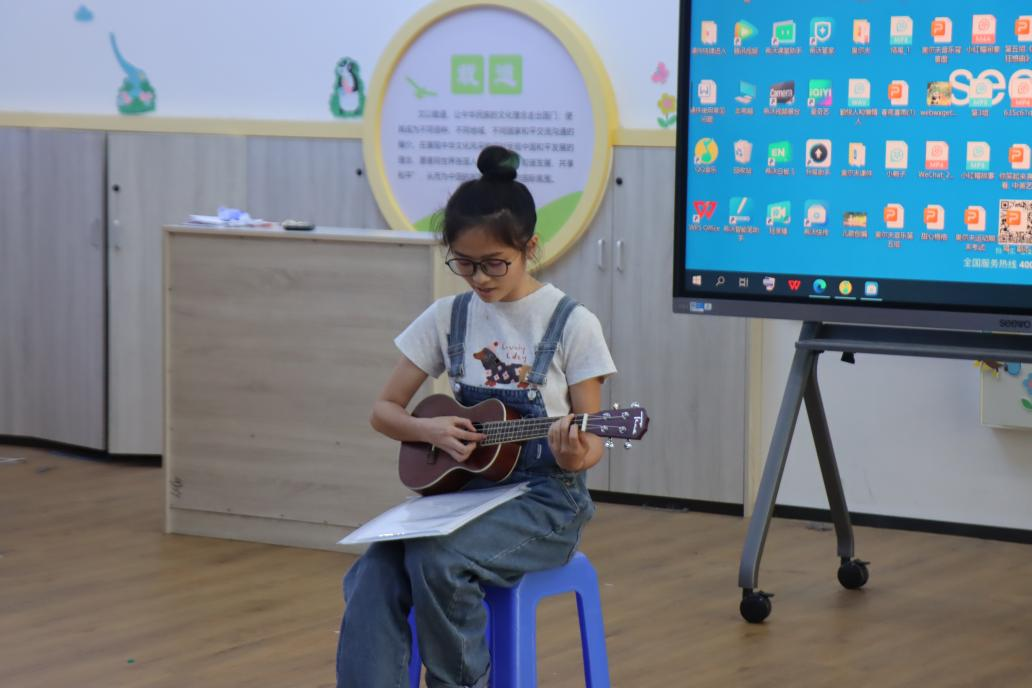 2. “器乐赛道”呈现多元化演绎,钢琴、吉他、乌克丽丽等同台争鸣,音艺联盟成员以令人动容的器乐演奏充分展示了对音乐的热爱。经激烈角逐,学前教育24幼教转段班的朱悦同学的钢琴演奏《春舞》斩获器乐冠军。